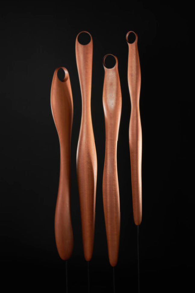 Técnica/materiales: Escultura de pared / Madera De Ukola. Estas almas están inspiradas en el cuadro de «La Adoración de San Juan» del Greco.